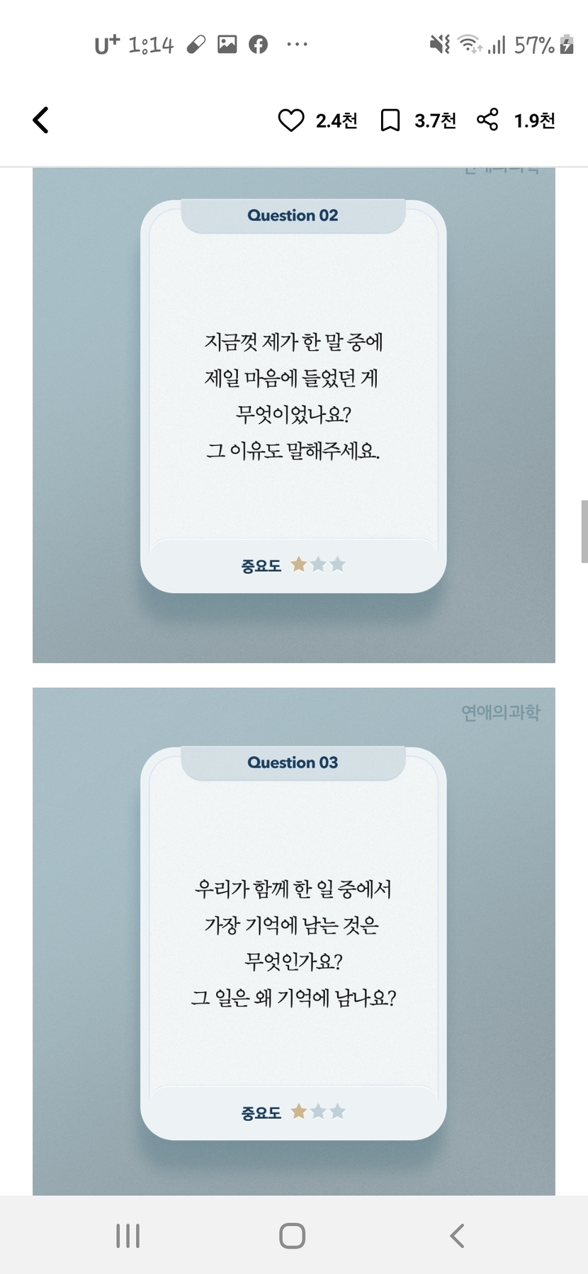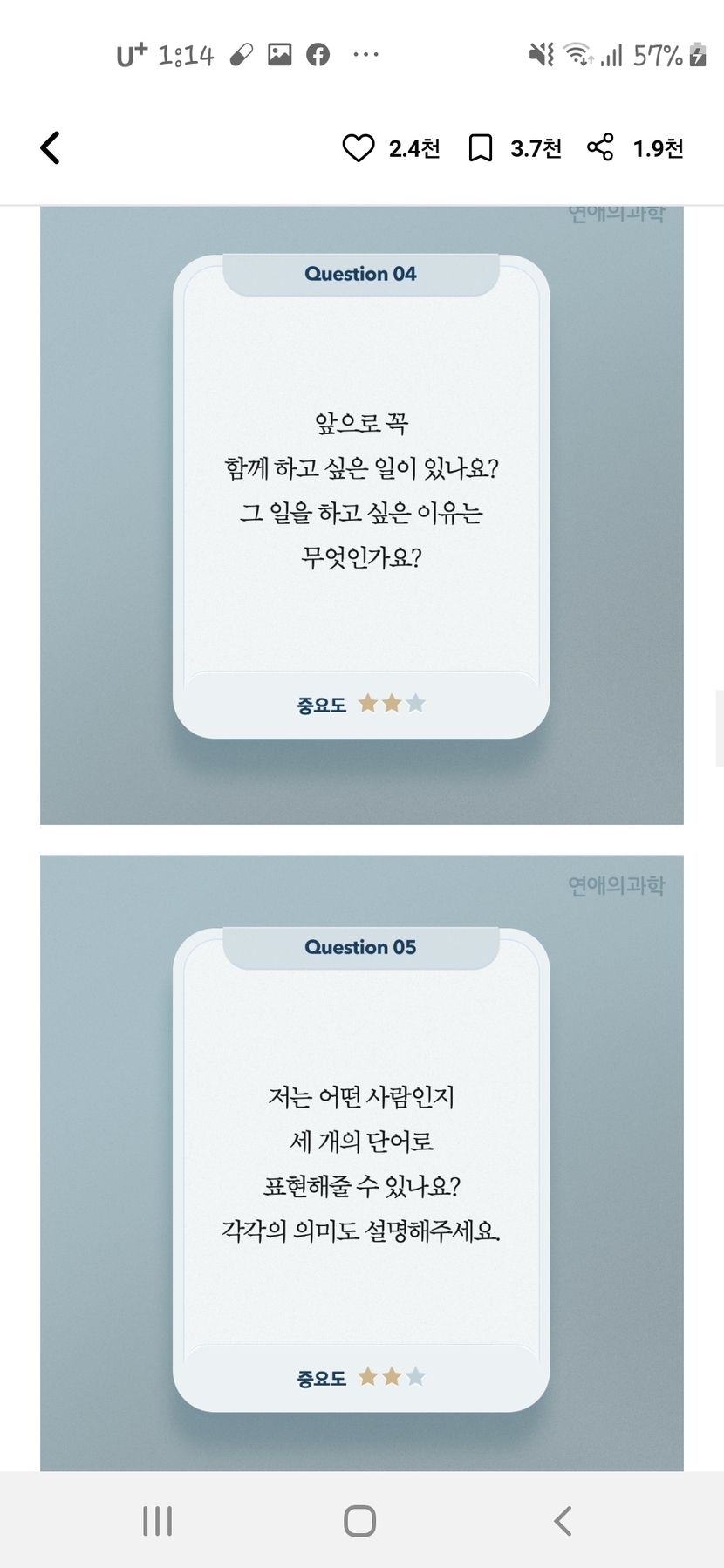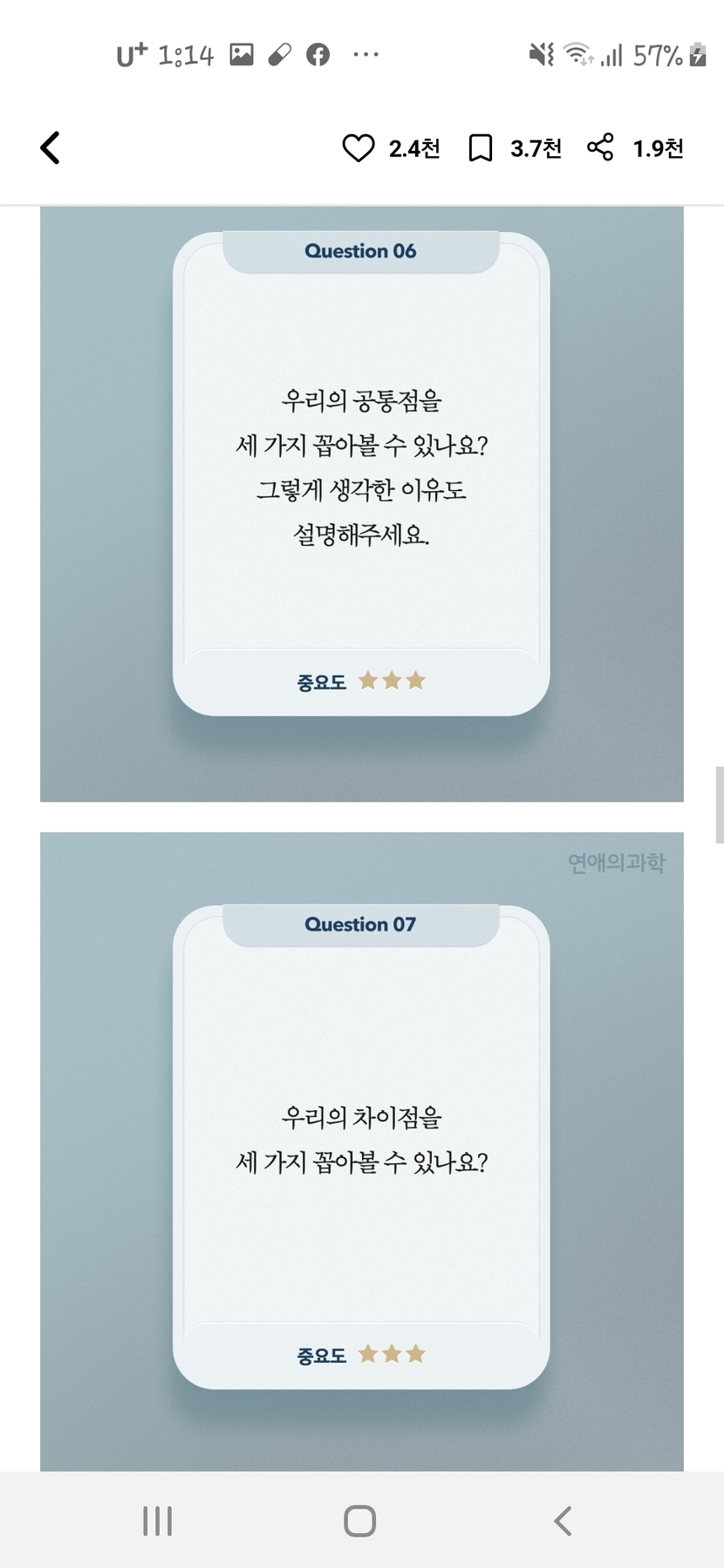 20.05.05 1,098 읽음 우리가 사귄지 1년이 지났다면? 💛9가지 질문들💛 마음의 소리 💕 구독하기 0 5 콘텐츠의 수익 12 1주년이 지난 커플들에게 추천하는 질문들 입니당서로 이 질문들을 나눠보면 연애에 관계가 발전되고 좋아질슨 있다고 해요~~♡^^ 막 사귀기 시작한 초반때에나 장기간 연애를 하신분들에게 추천하는 질문들은 따로 있습니다!!! 5 0 / 300 입력