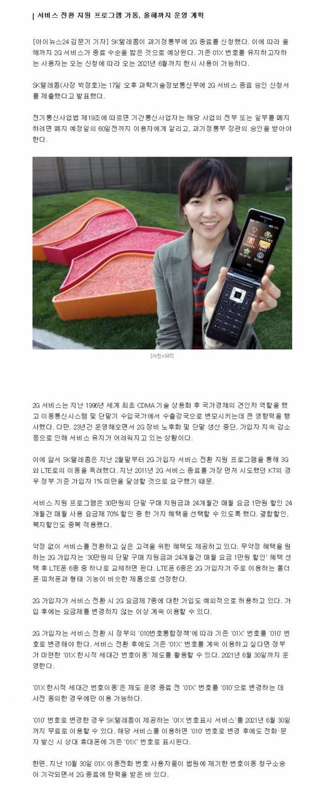 '01X 번호' 2021년 6월까지…SKT, 정부에 '2G종료' 신청 ,,,