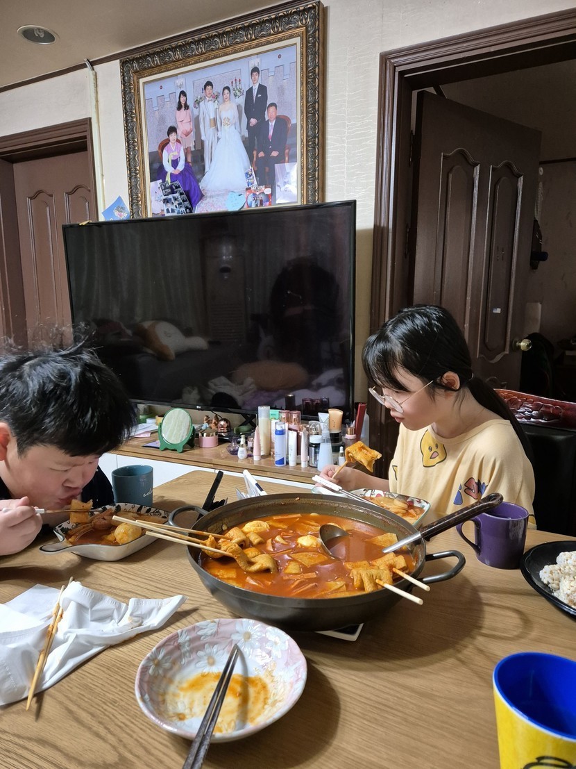 손자손녀 떡볶이 먹는 모습