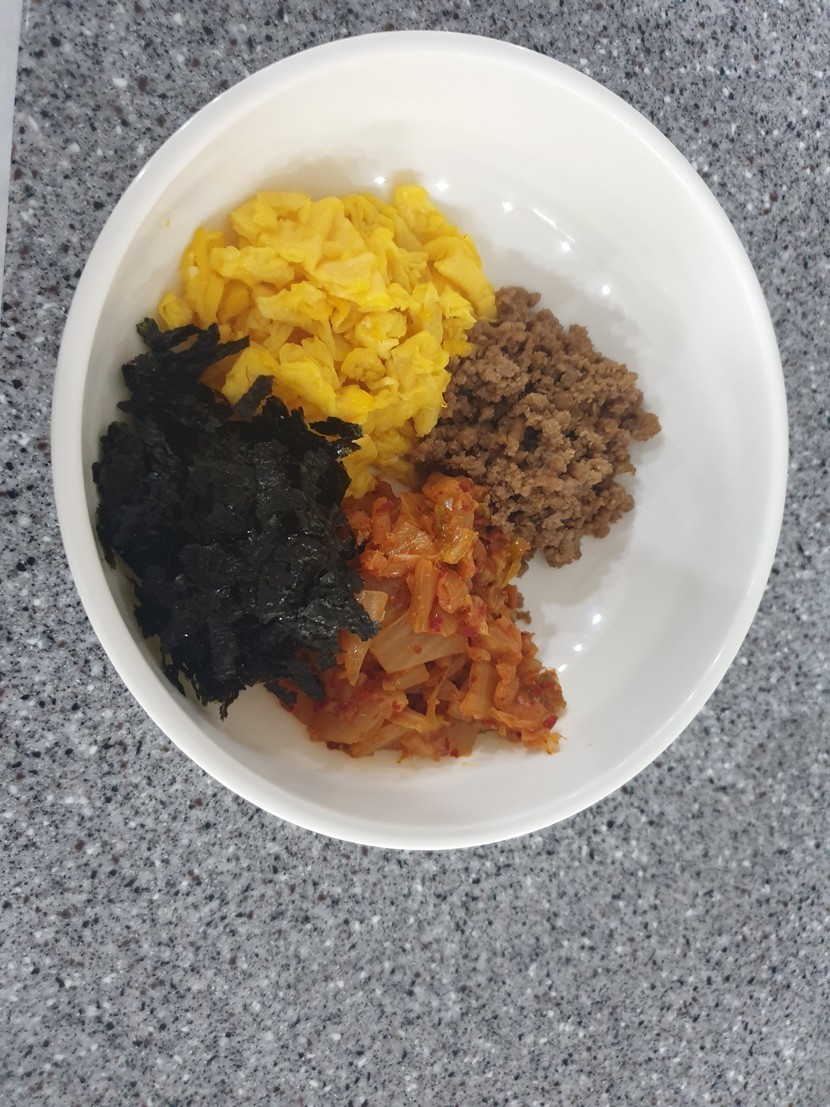 삼색소보로 비빔밥.