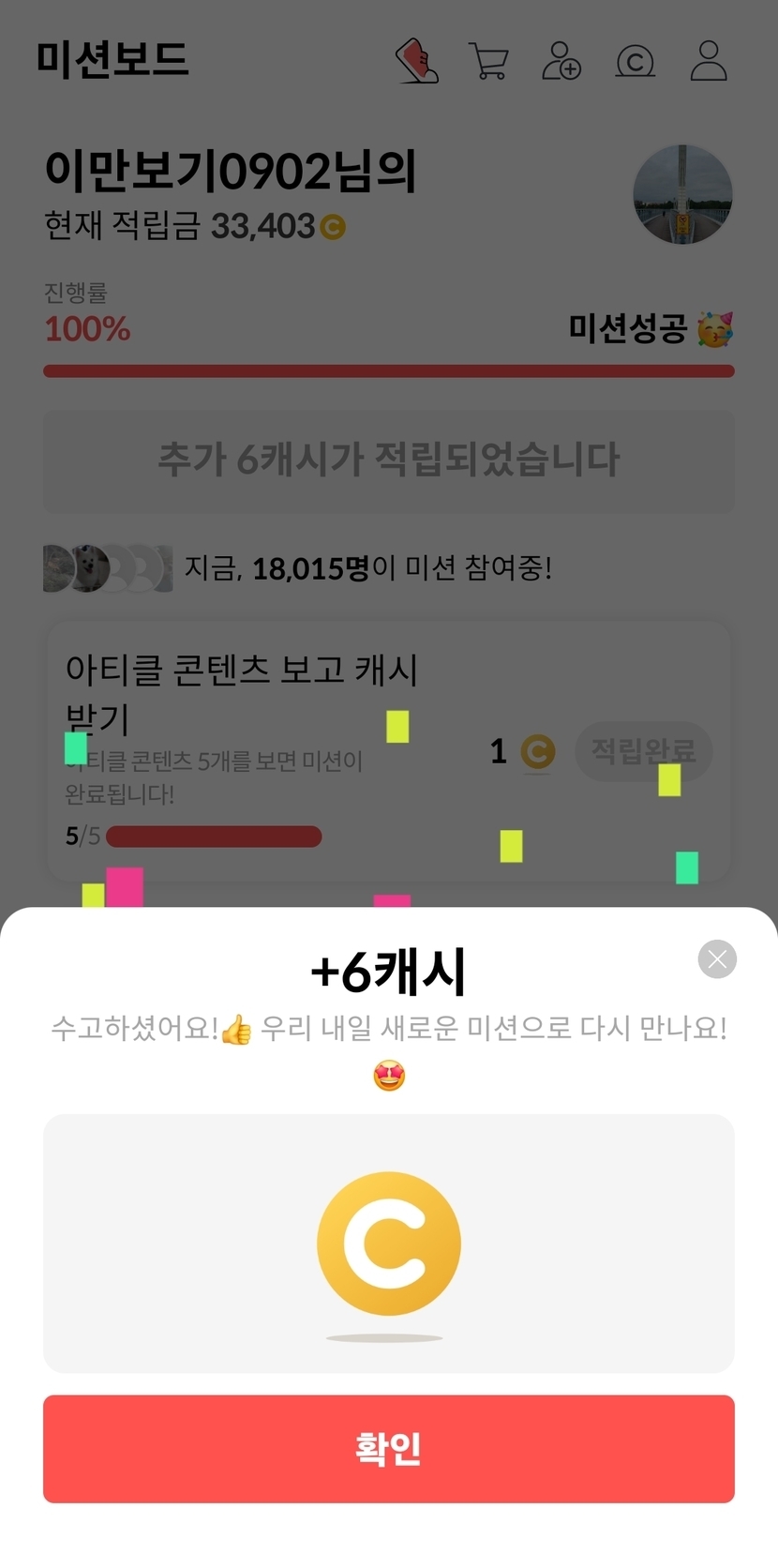 어제 미션적립