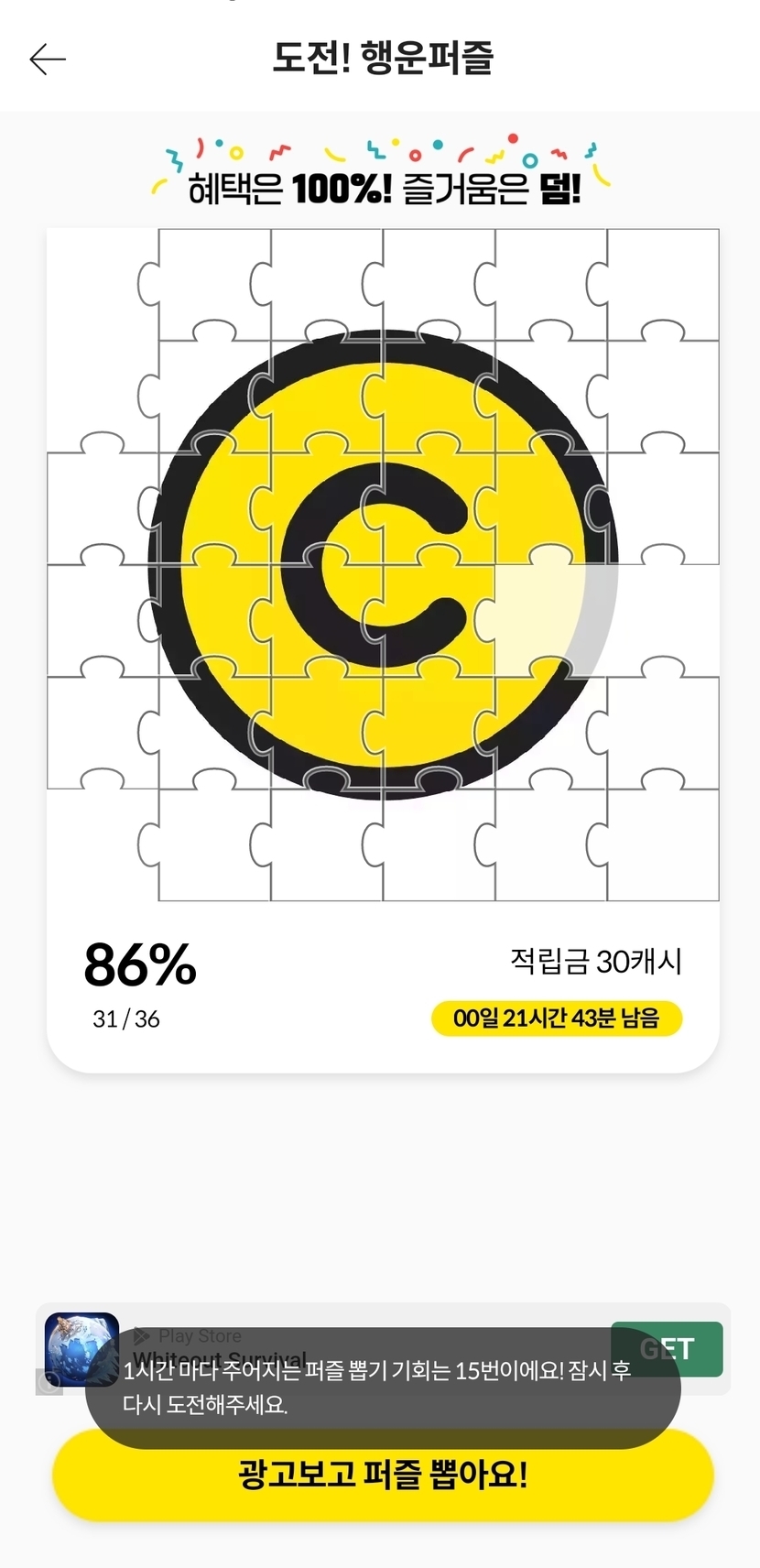 3시간을 해서 30캐시를 못하다니....