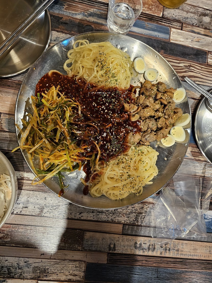 누룽지바베큐와 골뱅이쫄면 무침