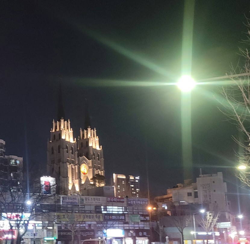 밤풍경 저멀리교회인가? 성당인가?