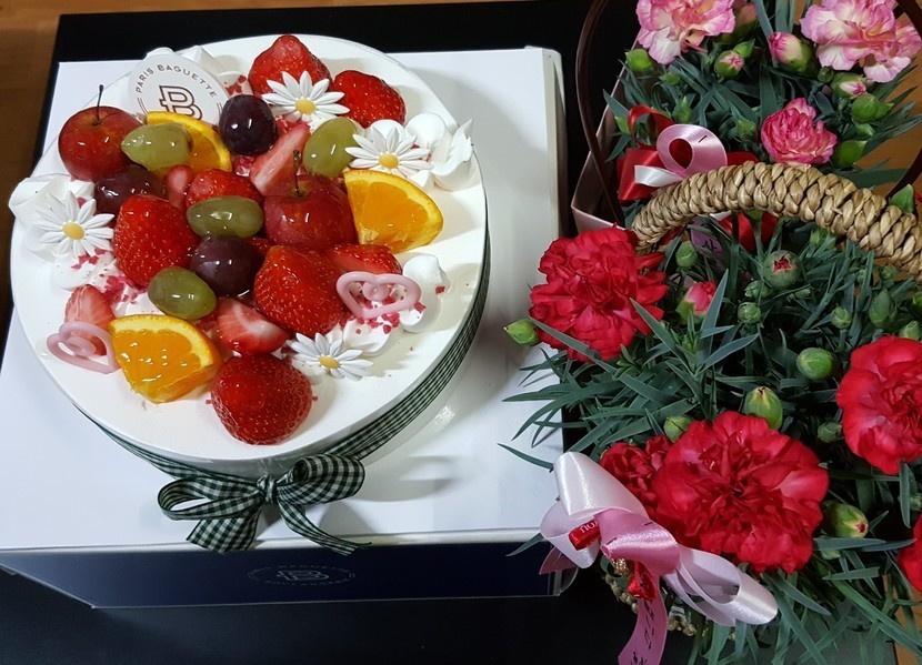 케이크와 카네이션 손편지를 준비하게 되었습니다...ㅠㅠ
