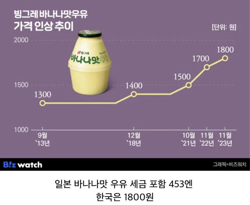 24.03.21 24 읽음 바나나 우유 🍌🥛 바늘과실 구독하기 0 0 콘텐츠의 수익 0 한국에선 1,800원인데 일본은 4천원이 넘는 바나나 우유빙그레는 효자기업👨💼 0 0 / 300 입력