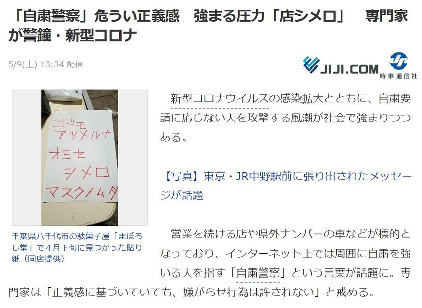 [일본반응] 일명 자숙경찰이라는 사람들의 횡포가 점점 심해지고 있는 일본의 현 상황.