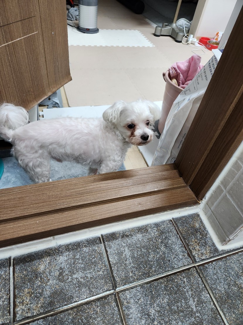화장실 앞에서 지켜보는 개아들