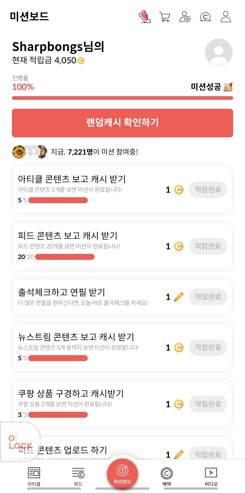 오늘도 미션 완료