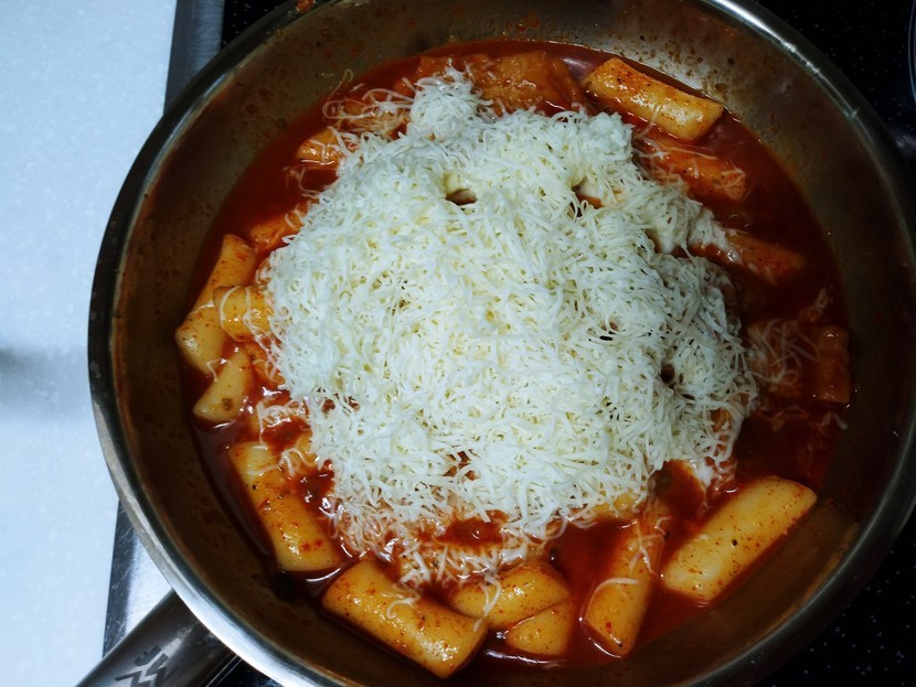 떡볶이에 눈꽃치즈 듬뿍 올려먹어요.