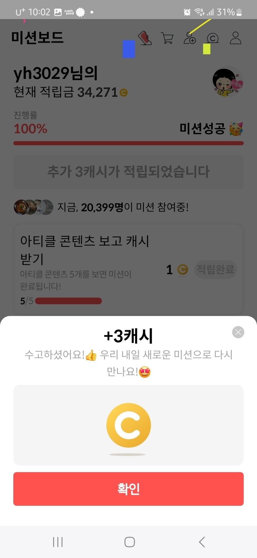 3캐시 획득 🎁