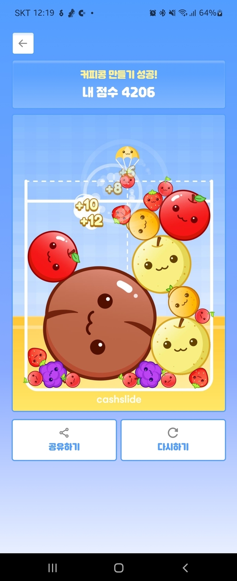 24.04.04 47 읽음 커피완성 반짝반짝 빛나는 구독하기 4 4 콘텐츠의 수익 1 커피가 되긴 되네요그러나 꽝~~~아니 캐쉬슬라이드는 앱 오류가 너무심하네요클릭이 안되서 이제는 커피 게임이나 쇼츠영상보는것 틀린크림찾기 터치가 안되요이거 해결방법 아시는분 4 0 / 300 입력