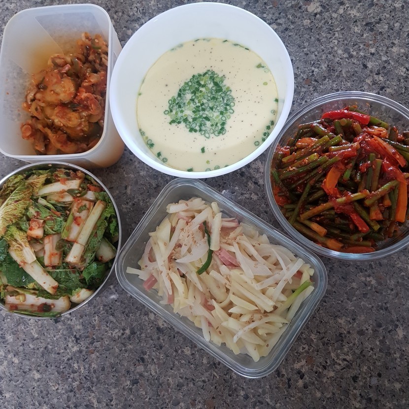 20.05.11 249 읽음 반찬만들기 동네한바퀴 구독하기 4 16 콘텐츠의 수익 19 계란찜을 푸딩처럼만들고 마늘쫑 살짝데쳐 고추장에 팍팍무치고감자채썰어 햄넣고볶아볶아~열무김치담고 남겨둔 얼갈이 쪽파랑 청양넣고 새콤하게 무치고 내가좋아하는 오이지도 두개 무쳤는데~지금부터 도시락싸고 찌개끓이고해야되는....하루 다 갈듯 16 0 / 300 입력