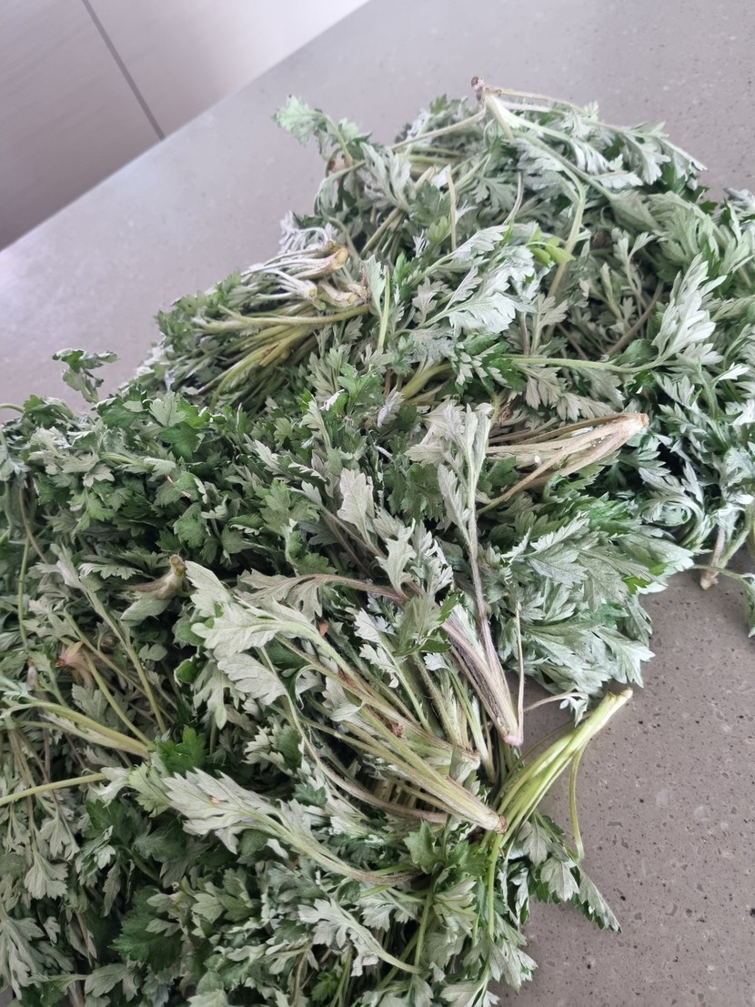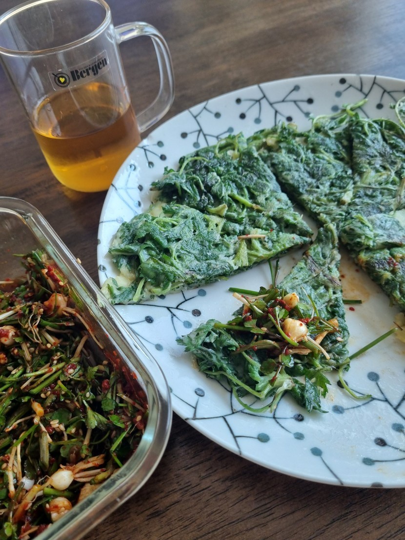 쑥부침개~ 시골에서 뜯어온 쑥~ 달래장 얹어서 맛있게 냠냠~^^