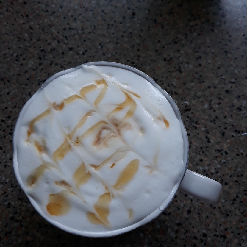 카라멜마끼아또는 다른 커피랑 다르게 특이하게 마지막네 커피를 넣는거라고... 커알못이지만 열심히 따라서 해봤는데