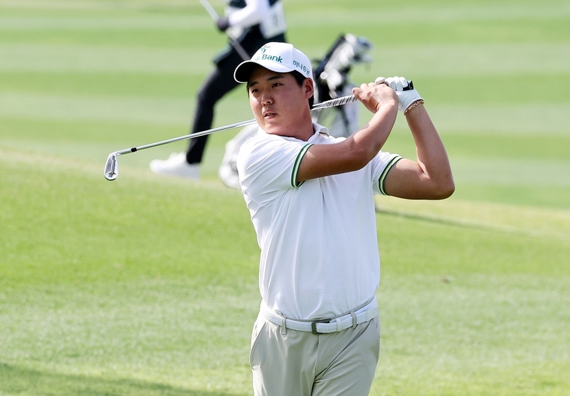 15번 홀(파4)에서 2m 버디를 보탠 이승민은 16번 홀(파3)에서 그린을 놓친 뒤 1m 파퍼트를 놓쳐 아쉬움을 남겼다.