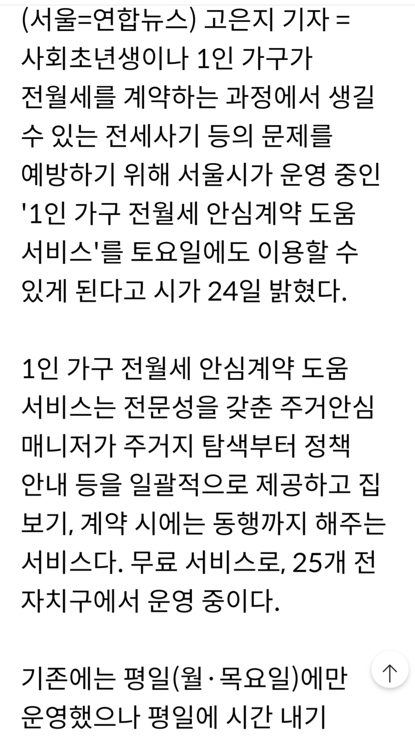 서울시 1인가구 전,월세 계약 토요일 에도 신청하세요
