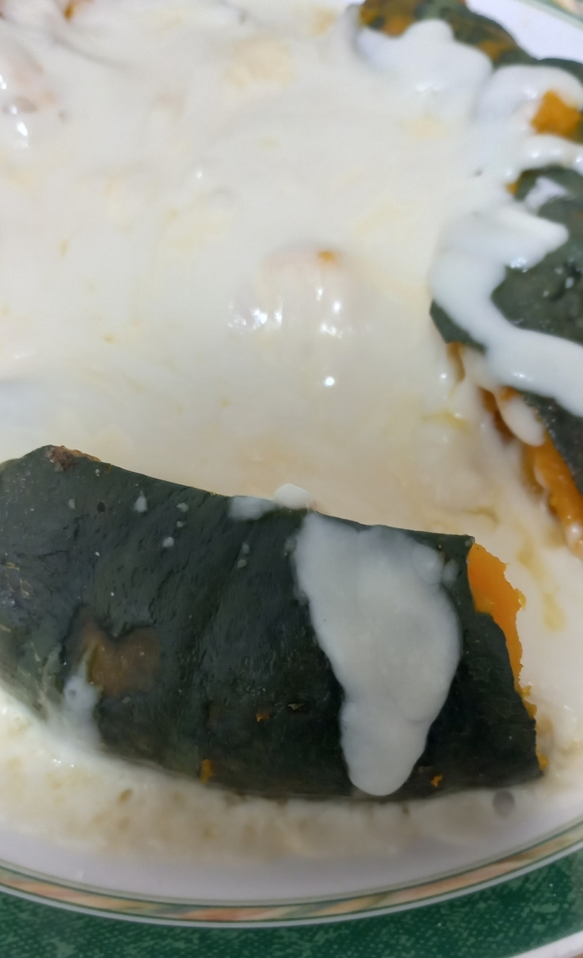 1. 단호박을 깨끗이 씻어 찌거나 렌지에 돌려 익힙니다.