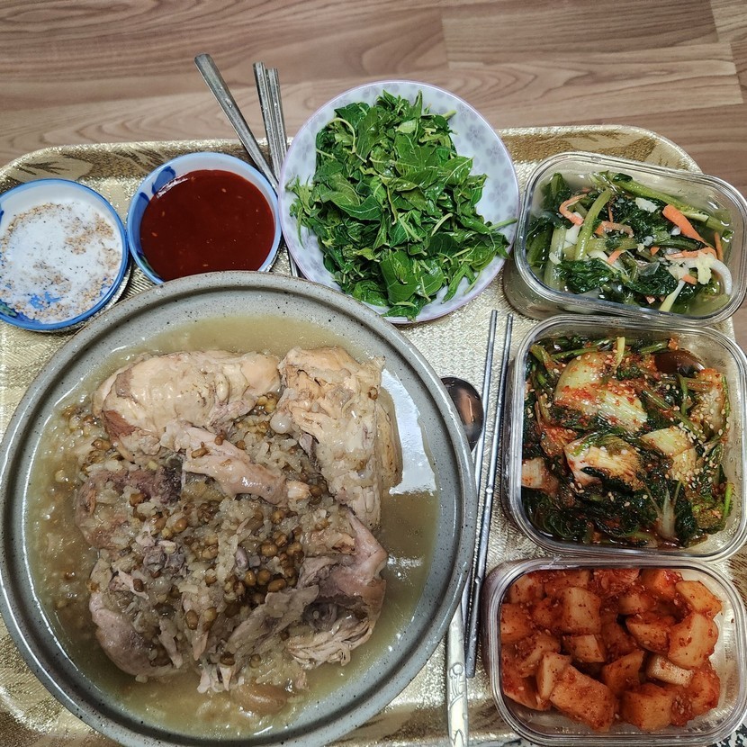 오랜만에 전복넣은 백숙 끓여봤어요.