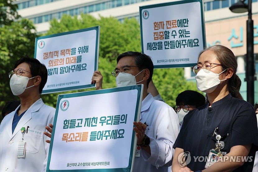 다만 서울아산병원 교수 50여명은 이날 병원 앞에서 정부의 일방적인 의대 증원 정책을 반대한다는 내용의 피켓 시위를 해 눈길을 끌기도 했다. 이들은 대강당에서 '2024년 의료대란과 울산의대 교육 병원의 나아갈 길'을 주제로 세미나도 열었다.