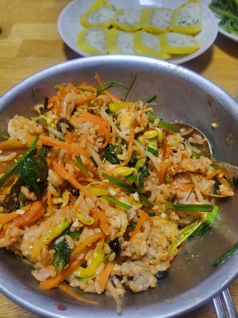 남아있는 반찬 다 넣고 비빔밥