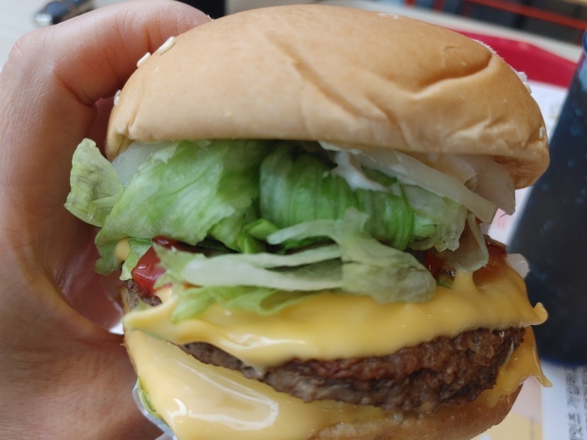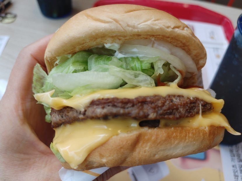 햄버거를 배불리 먹고 나오는데