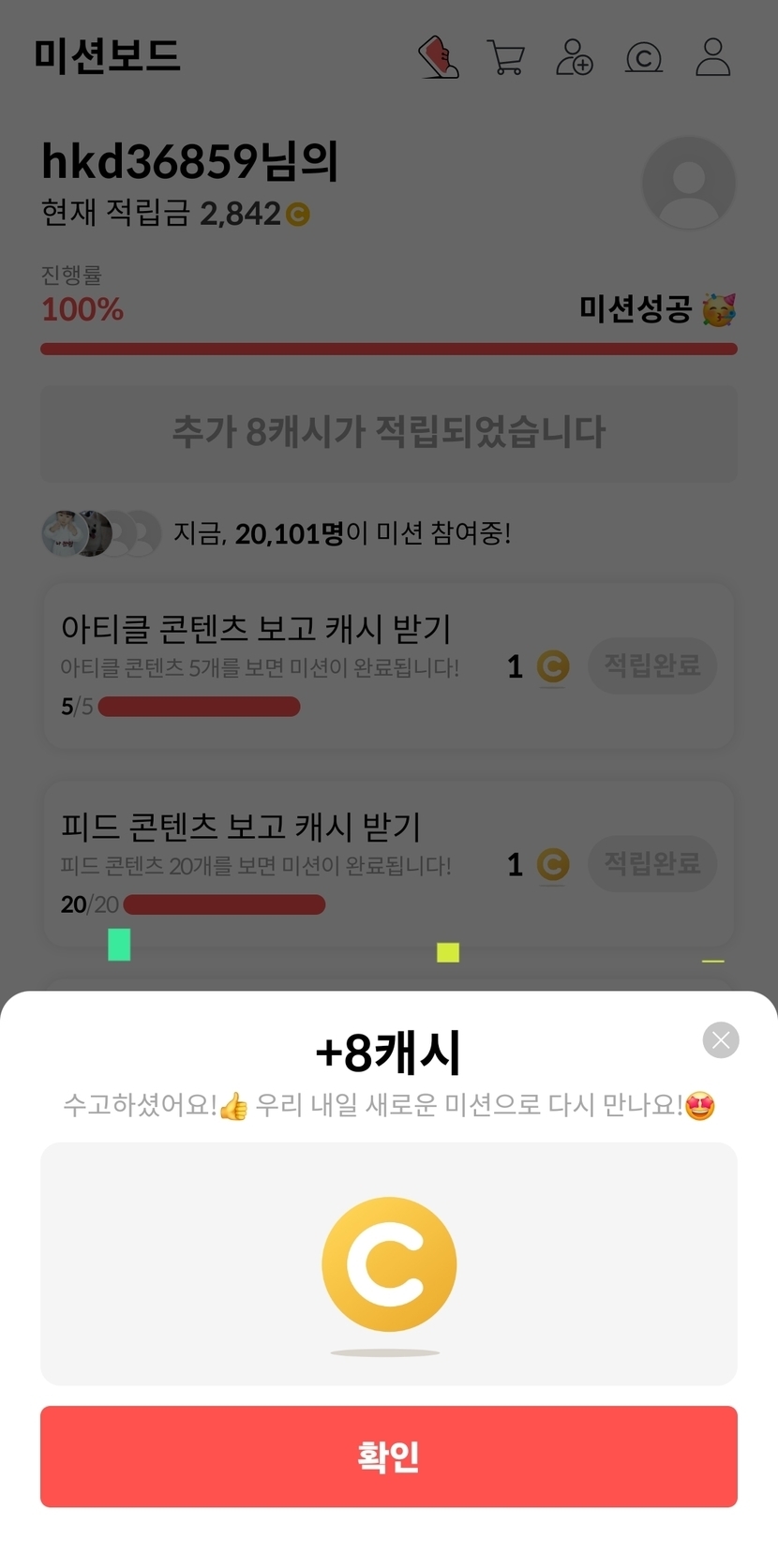 오늘의 미션 성공