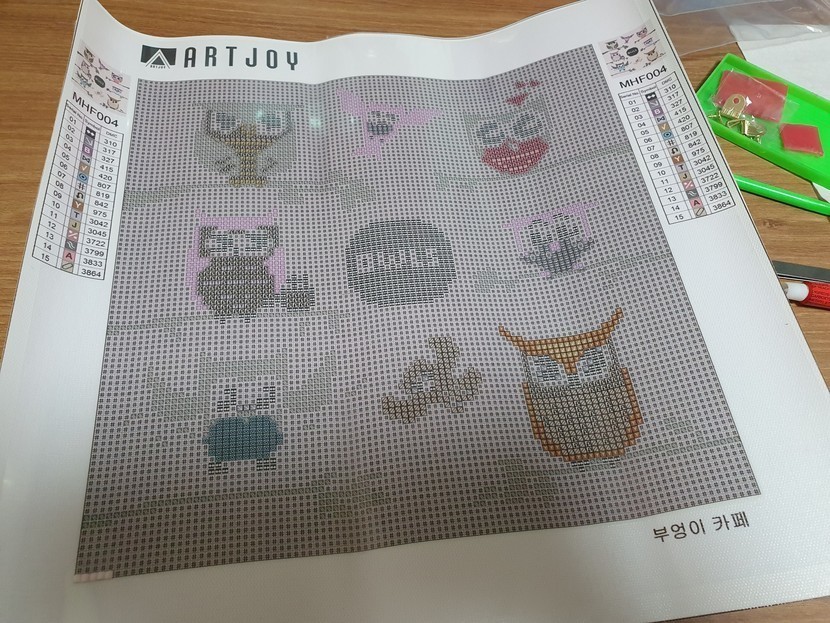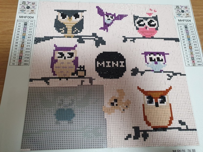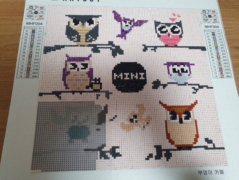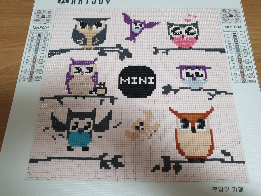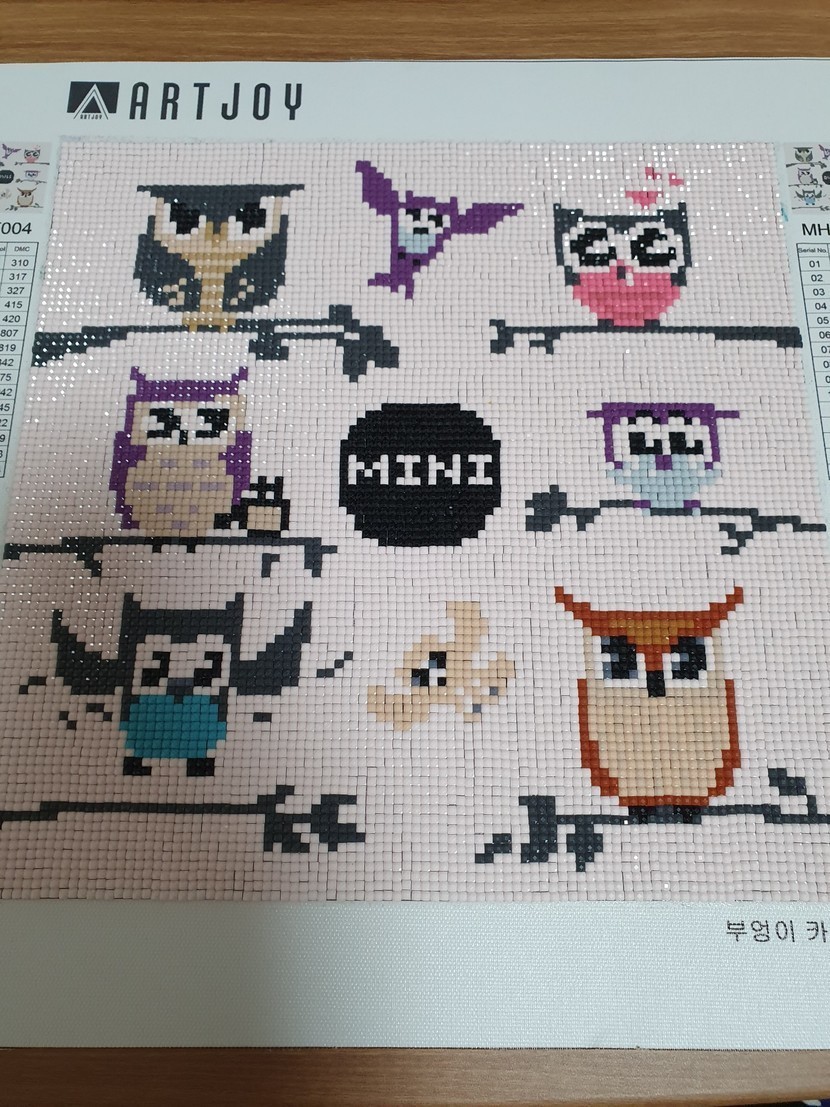 부엉이 보석십자수😘힘들었다...