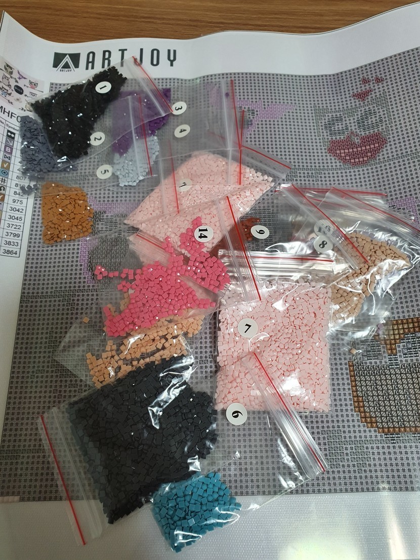 박스안에 붙일 비즈가 색깔별로 들어있고