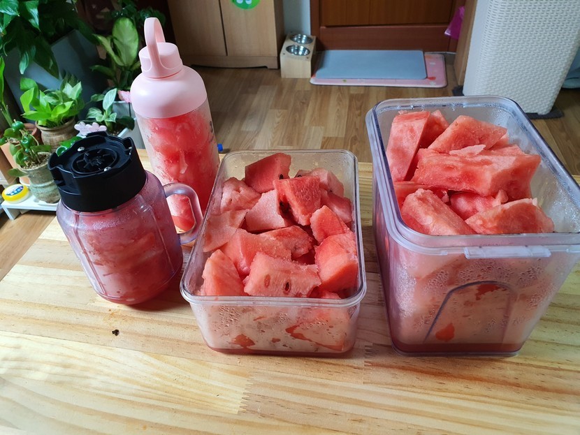 20.05.16 241 읽음 수박 해체 쑈~쑈~쑈~~~~~~^^ 보릿고개너머눈물비우산 구독하기 3 13 콘텐츠의 수익 18 이렇게나 큰 수박을 반을 똬아~~~~잘라서작게 잘라 찬통에 담아놓고껍데기 부분은 계륵이라 숟가락들고긁어서 믹서기 통에~~~쉐킷 쉐킷해서 수박 주스 해먹어야지요 ㅎ 13 0 / 300 입력