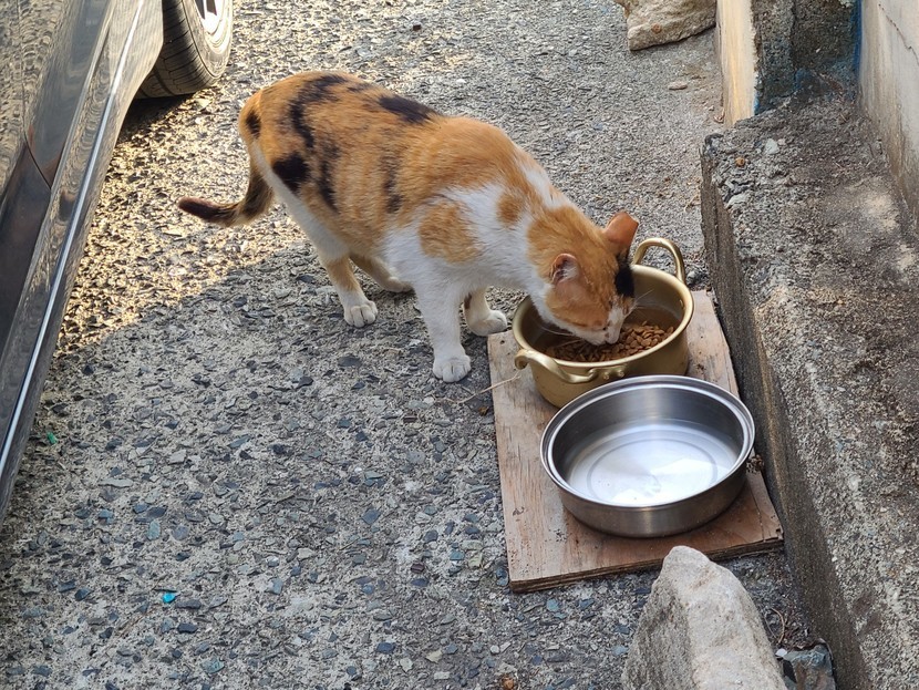 얌전히 밥주세요 기다리는 이쁜삼색이