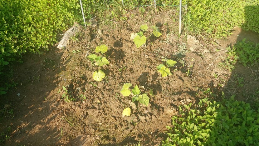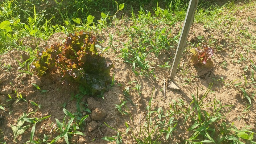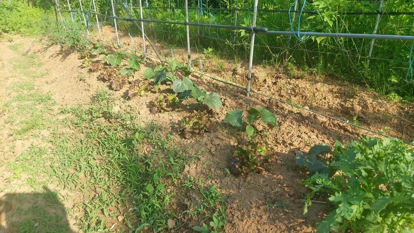 종이컵에서 키운 상추들을 텃밭에 옮겨 심으니 건강하게 잘 자라고 있네요.