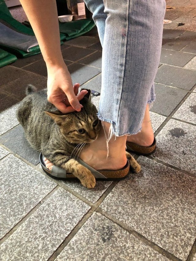 우리동네 고양이 발에 탑승함