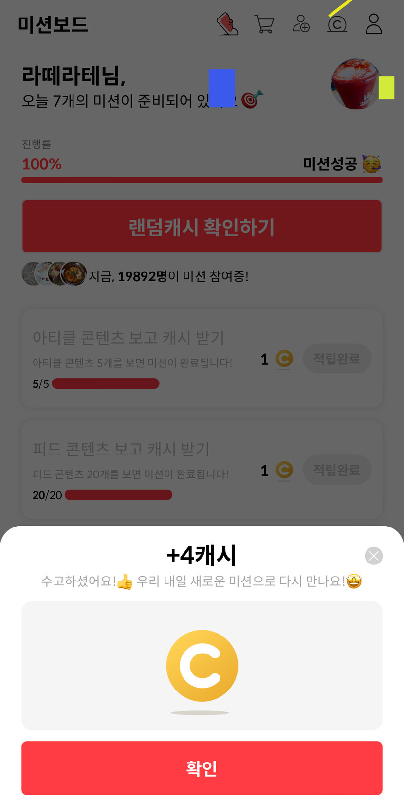 오늘 랜덤캐시 4캐시
