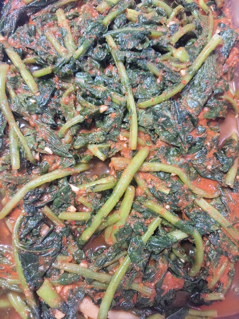밭에 심은 열무로 김치 담궜어요