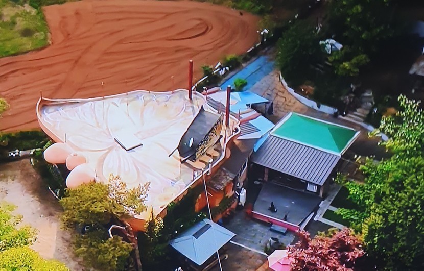 지붕이 나비모양 예쁜꽃에 새들까지 날이들어요