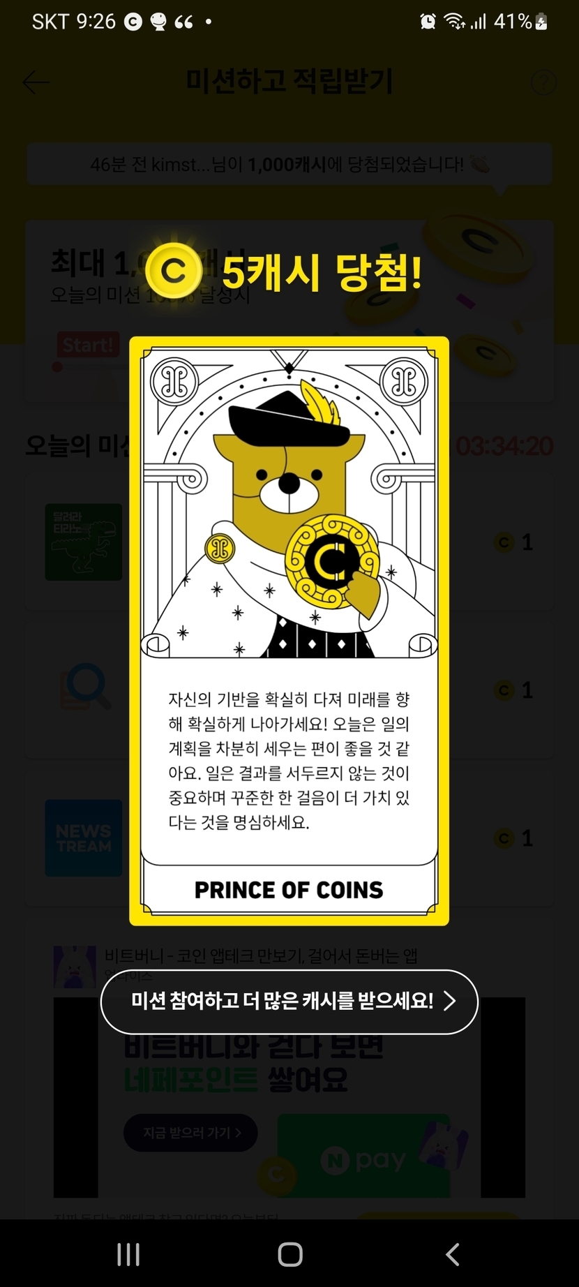 24.05.31 139 읽음 랜덤캐시,미션보드 미션완료!! swsion1078(답방) 구독하기 30 25 콘텐츠의 수익 5 5월31일 랜덤캐시 미션완료 7캐시, 미션보드 미션완료 4캐시, 타로카드는 5캐시, 비디오시청은 1캐시 받았어요. 25 0 / 300 입력