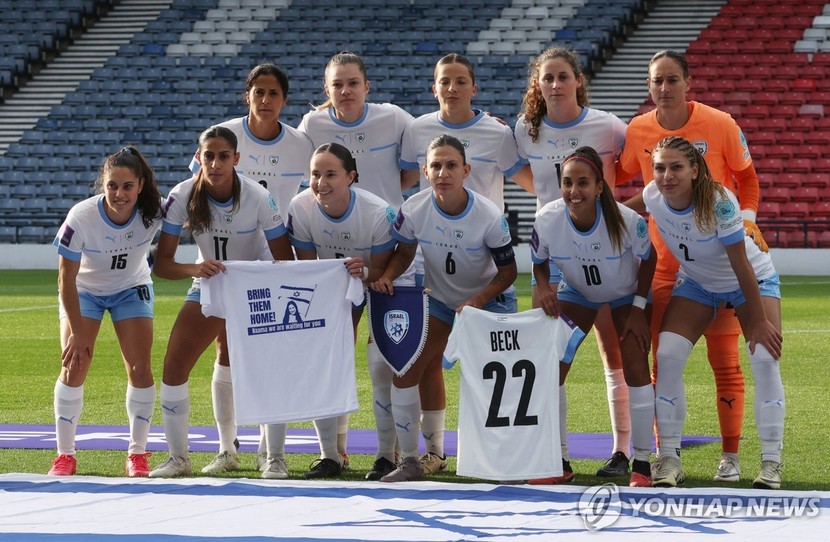 그라운드에 들어선 이스라엘 선수들은 경기 시작을 앞두고 사진을 찍는 과정에서 하마스가 억류한 인질들을 언급한 문구를 담은 티셔츠를 전면에 내세웠다.