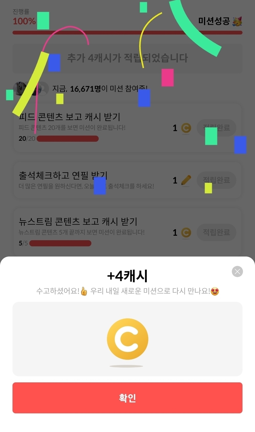 4캐시 됐어요~^^