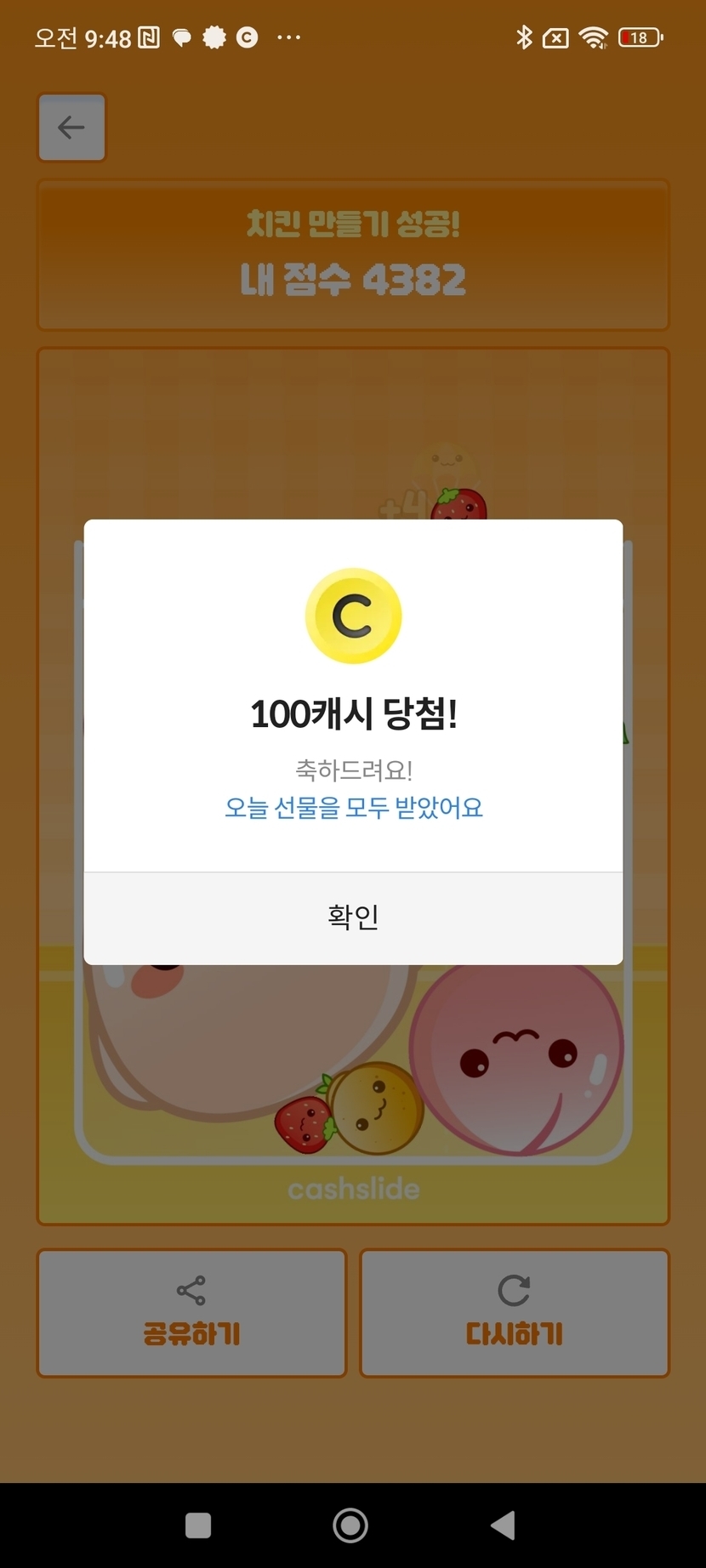 치킨게임 100캐시 당첨!
