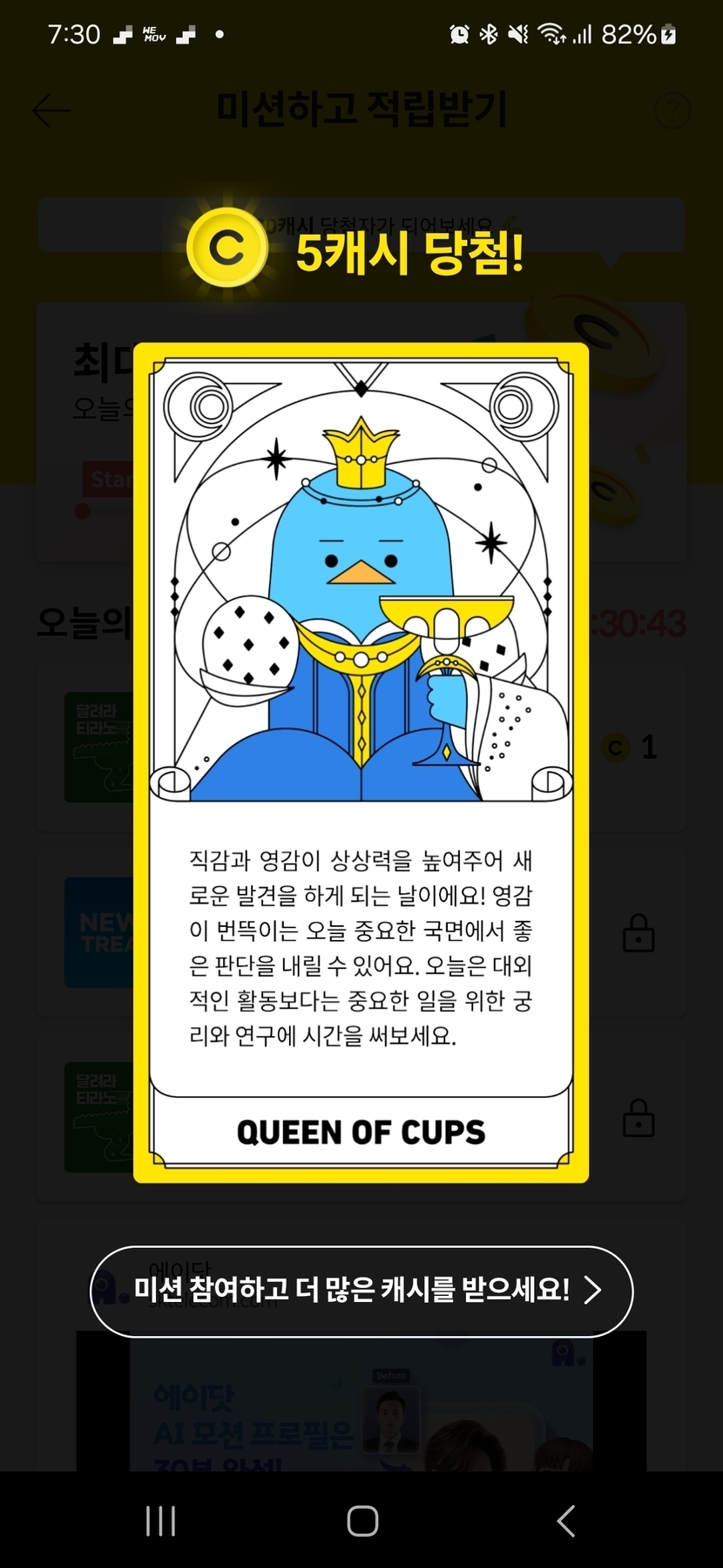 캐시슬라이드 오늘의 미션타로