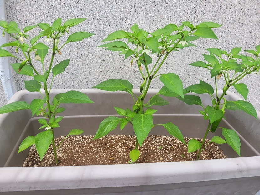 화분에 고추가 열렸어요