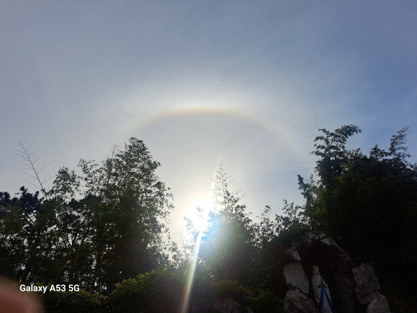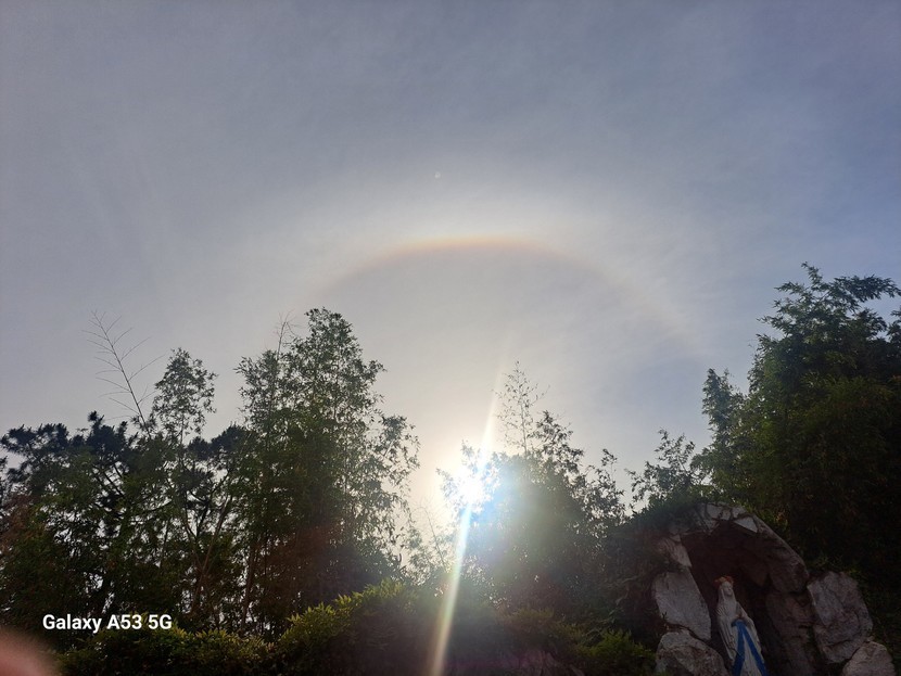 비가오지 않았는데 하늘에 무지개가 떳어요