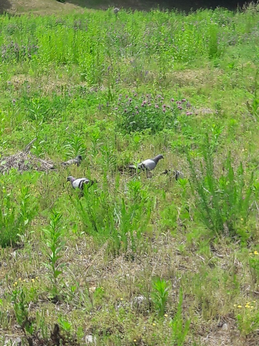 비둘기가 들판에 먹이찾고있네요~~^^