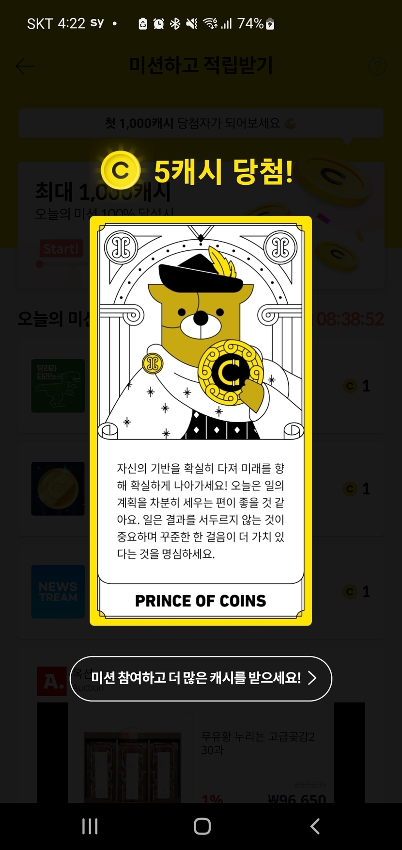 오늘 타로 5캐시! 😀😀