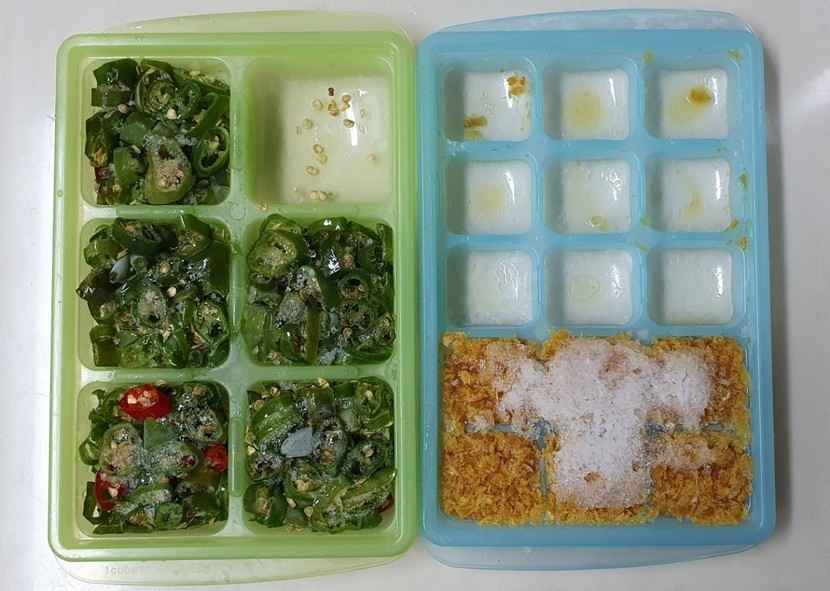 20.05.19 356 읽음 양념용 고추, 파, 마늘 상하지 않게 보관하는 법~~ 😁😋😊 cas10614 구독하기 23 89 콘텐츠의 수익 28 양념용 고추, 마늘, 파를 잘못 보관해서 버린 적이 많거든요.다들 잘 하시겠지만 오늘 냉장고 정리하다가 생각나서 올려드립니다. 🤗매운 맛과 감칠맛을 좋아해서 간 마늘과 잘게 썰은 파와 고추 많이 쓰거든요. 소분해서 냉동실에 넣어두었다가 요리할 때 필요한 만큼 꺼내서 쓰니까 정말 좋네요. 😁꽉 채워서 냉동실에 넣어두면 정말 뿌듯합니다. 다들 편안한 밤 되세요~~ 🤗 89 0 / 300 입력