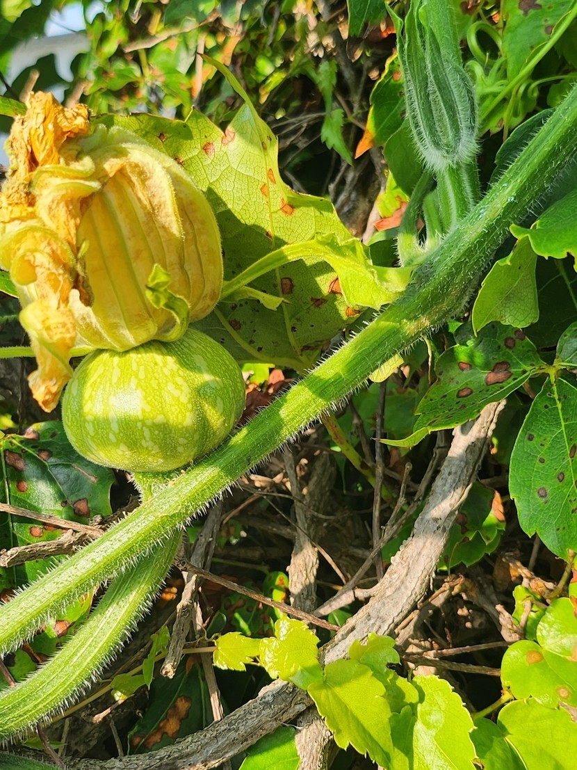 뜨락에 가지. 고추, 깻잎