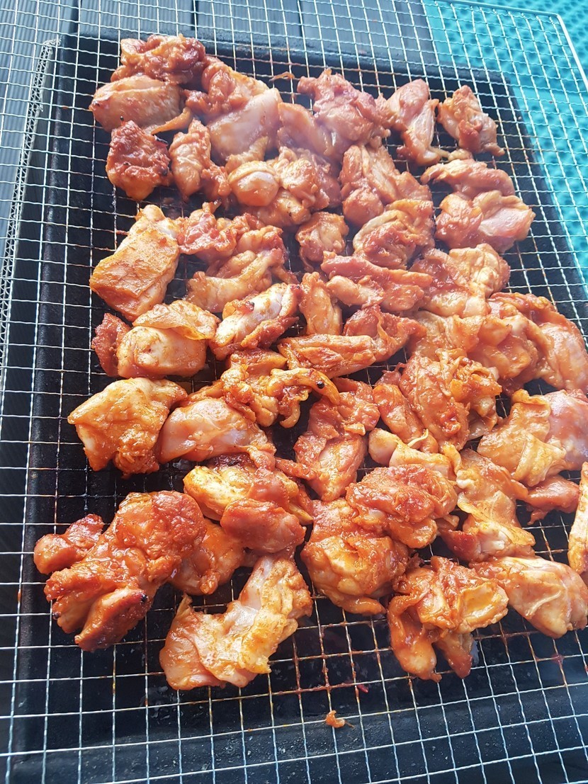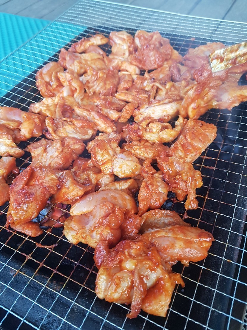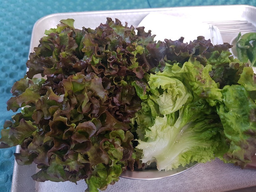 텃밭에서 키운 상추에 닭다리살구이...