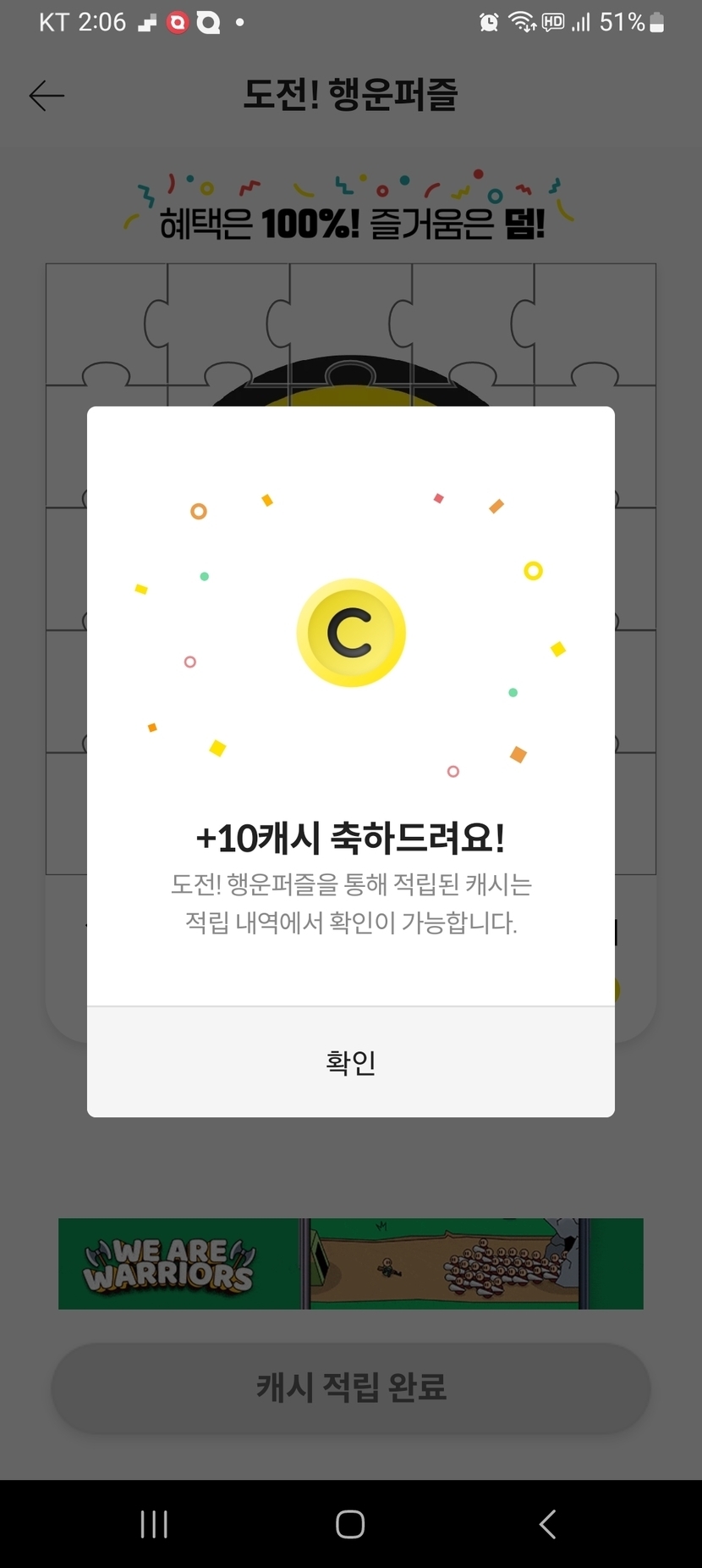 24.06.15 129 읽음 행운 퍼즐 첨 했어요 애선0219 구독하기 16 12 콘텐츠의 수익 3 언니 추천으로 해서 그냥 아는 것들만 하다 오늘 첨 언니가 퍼즐도 하라고 해서 해 보았어요 1ㅇ원 퍼즐 성공 했어요 12 0 / 300 입력