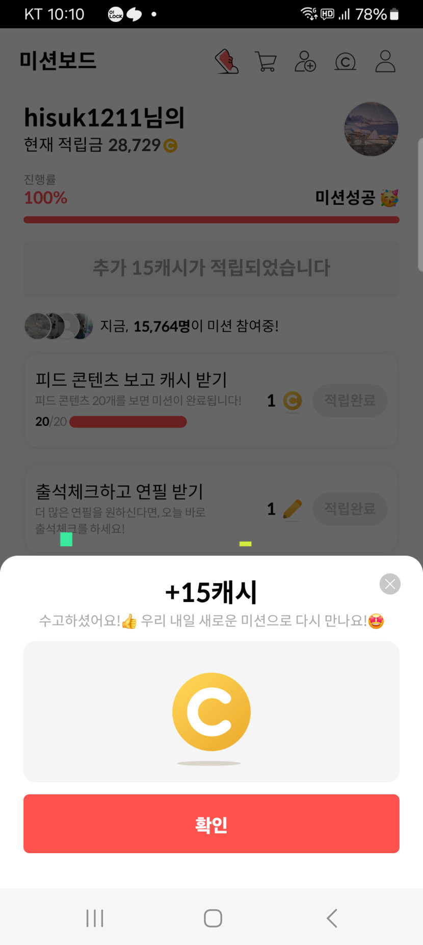 미션보드 추가캐시